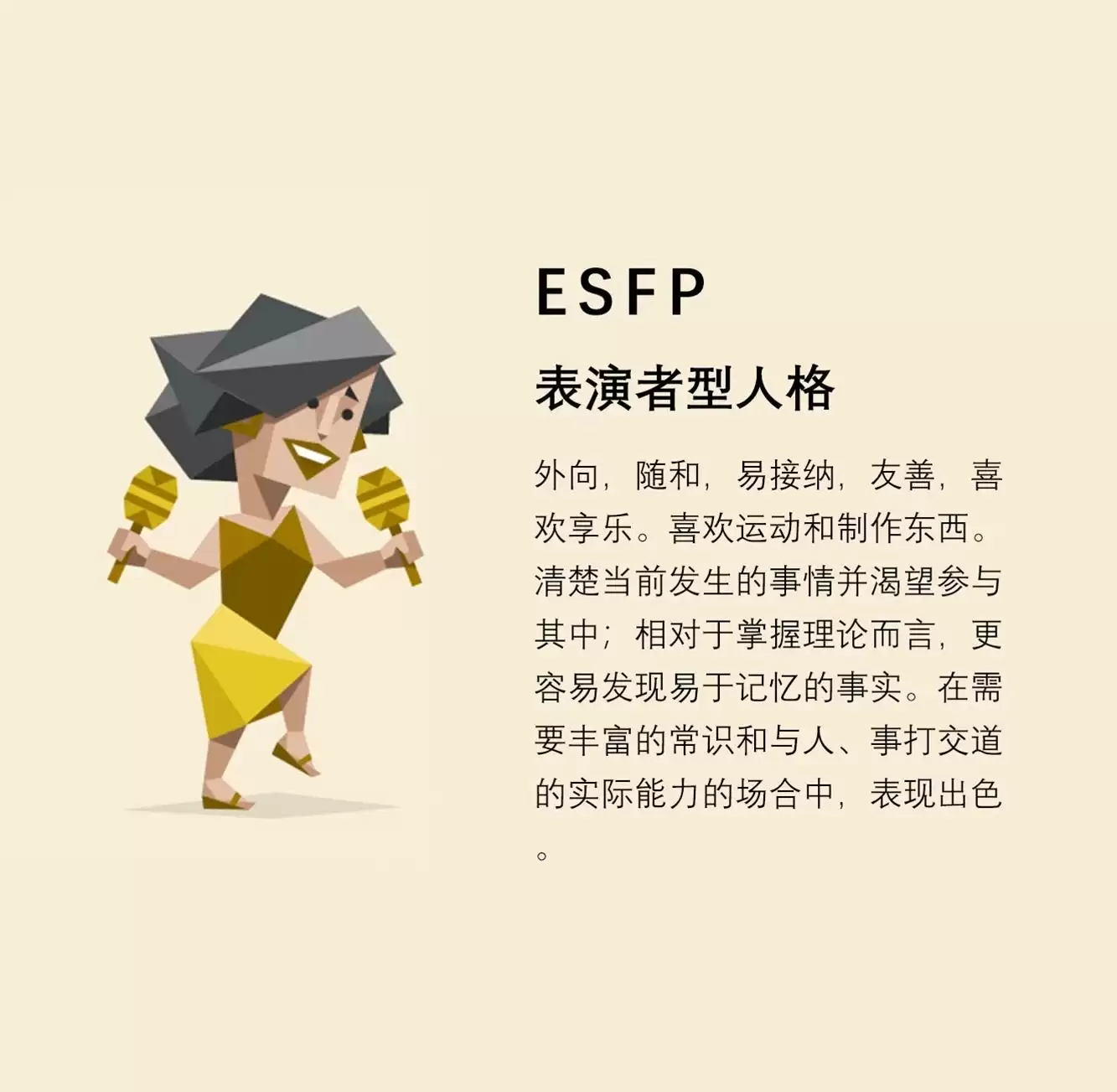 ESFP其实是迈尔斯布里格斯性格测试里的一种类型,也就是大家常说的表演型人格。这类人特别看重当下的感官体验,不喜欢想太多未来的事,就喜欢活在当下、及时行乐。而且他们超爱和人打交道,不管什么社交场合都能快速融入,也愿意主动参与各种热闹的活动,身上总带着不一样的活力和表现力。很多人好奇,ESFP到底是种什么样的人格呢?来了解下吧。