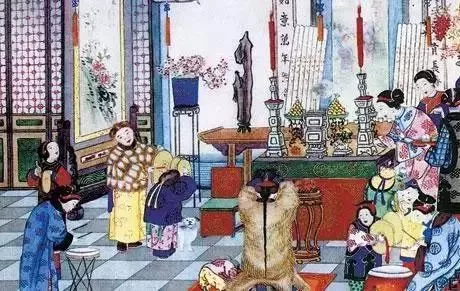 明清时期,祭祖是相当普遍的礼制实践,许多世家大族设有祠堂。然而对于不设祠堂的宗族而言,供奉纸上祠堂就成为了一种常见形式。据《肥乡县志》记载,“士大夫不尽立祠堂,奉神主于寝室,民间多画祖宗昭穆图供奉”;另据《风城县志》,“汉人供宗谱,宽可三四尺……按次开写先人名氏,男女夭亡者悉列入”。