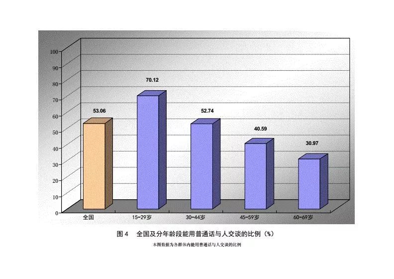 中国少数民族语言的使用人口总体上要少于少数民族的人口。据全国人口普查资料(2000年)和有关文献的数据,中国略多于50%的少数民族人口,即约有5800万人使用本民族语言。少数民族语言主要使用于本民族聚居地区,不同民族语言之间的使用状况存在着很大的差异。