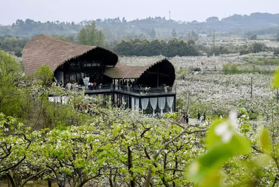 3月2日,春风伴着暖阳,在彭州市葛仙山镇熙玉村,千亩梨园内梨花飘香。梨园中心的梨花读·乡村图书馆引人瞩目:三层玻璃房搭配木质屋顶,既充满乡村野趣,也融合了现代艺术设计。