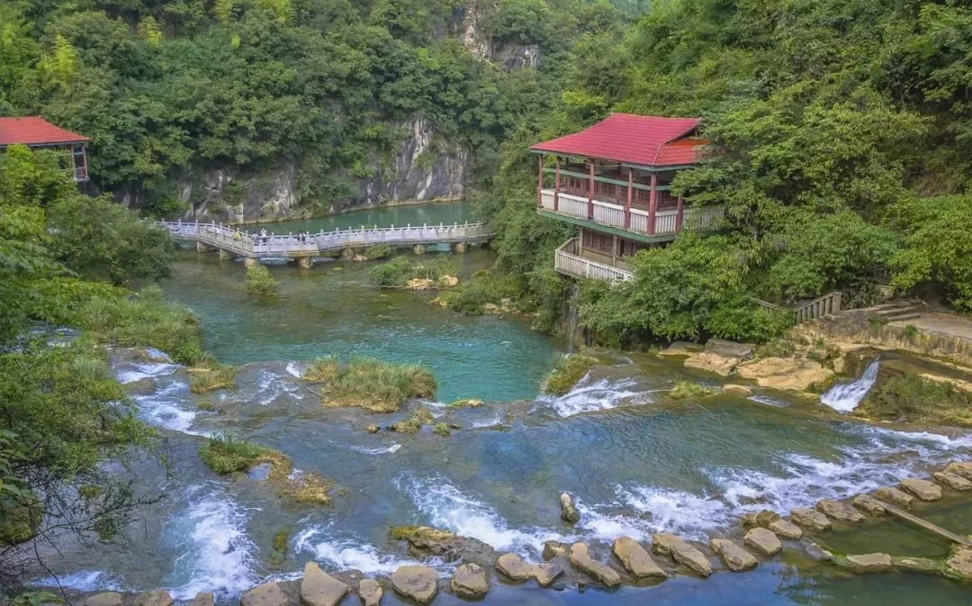 天河潭是以典型喀斯特自然风光为主、历史名人隐士文化为辅的风景名胜区,距贵阳市中心24公里,距花溪13公里,总面积为15平方公里,具有河谷曲拐,沟壑险峻的地貌特征,融山、水、洞、潭、瀑布、天生桥、峡谷、隐士为一体。山中有洞,洞中有水,洞行山空,空山闻水声,碧潭衍飞瀑,纵横密布,形态各异。有贵州山水浓缩盆景的美称,被谷牧副总理誉为“黔中一绝”。