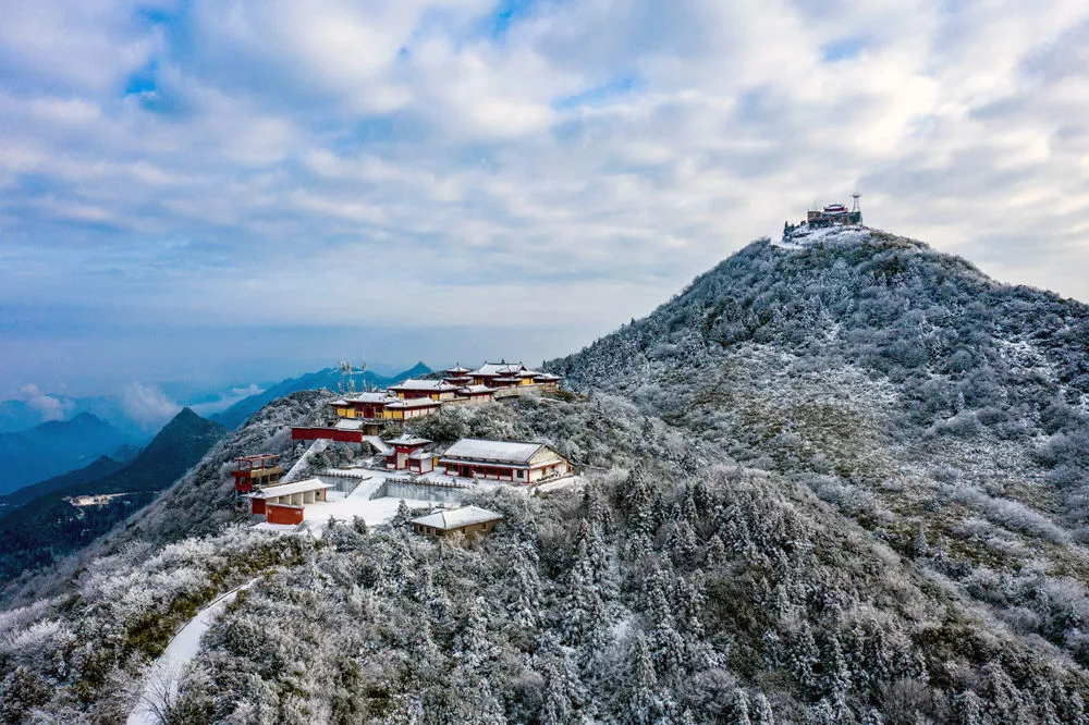 雪后初晴的华蓥山银装素裹,在蓝天白云映衬下美如画卷。