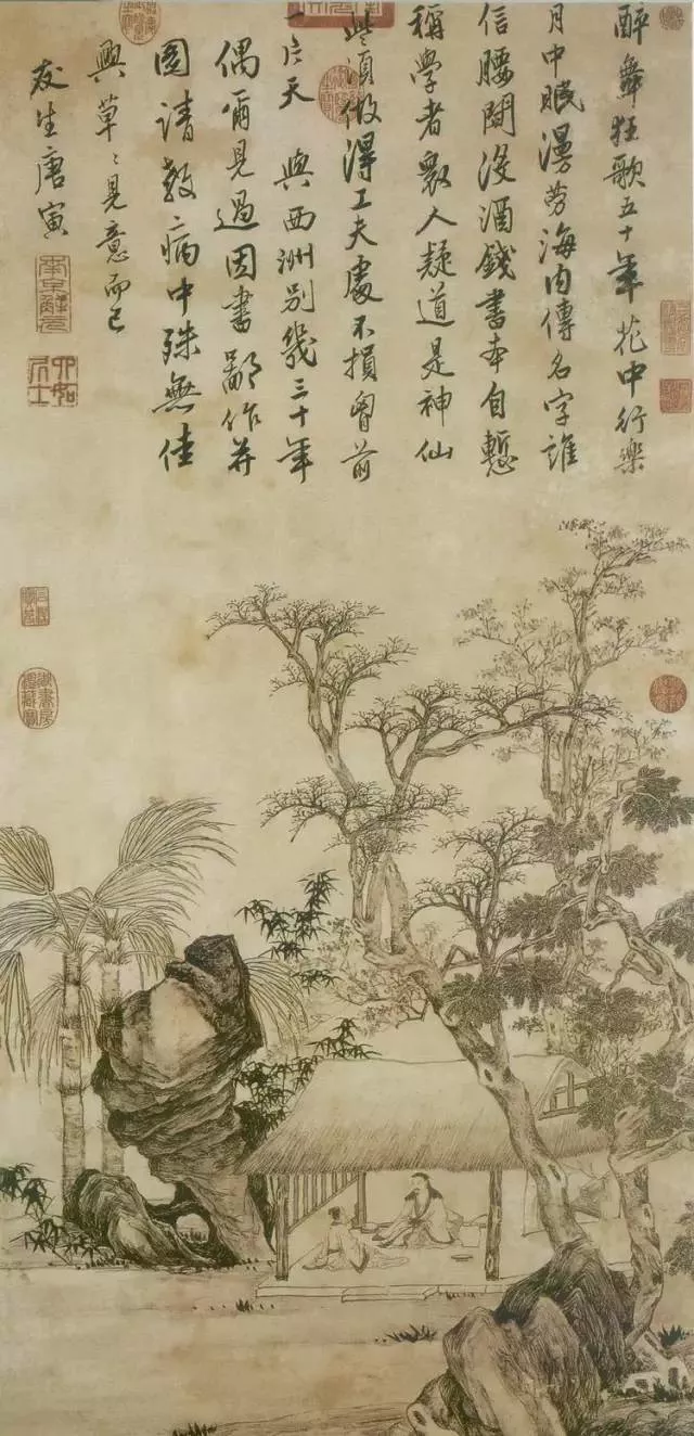 唐伯虎开了一爿扇庄专画扇面。 一天,云山居士来到扇庄,说:“画的内容由我命题,如画得好愿出三倍的价钱,否则就得白拿你三把上等的扇子,你看如何?”