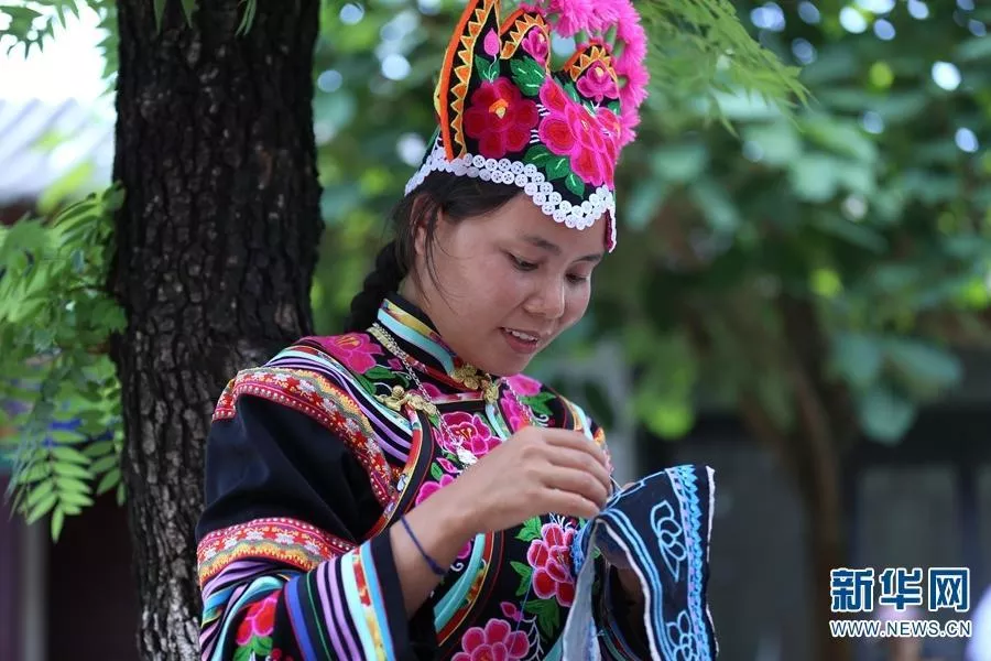 我珍藏着两幅身着彝族服装的照片。其中一幅是和一个名叫小妹的彝族聂苏支系姑娘在云南玉溪市峨山县岔河田间的合影。照片上,我俩都穿着彝族服饰,鲜红艳丽的服饰与身后金黄色的油菜花相互映衬,溢满浓郁的彝家田园风情。