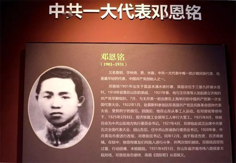1月5日是中共“一大”代表邓恩铭诞辰纪念日。1919年“五·四”运动在北京爆发后,济南学生热烈响应,邓恩铭站在学生运动的最前列,和学生领袖王尽美成立了“励新学会”“马克思学说研究会”;1921年,济南共产主义小组成立,邓恩铭和王尽美代表济南共产主义小组出席了在上海举行的中共“一大”。20岁的邓恩铭,是中共“一大”代表中最年轻且是唯一的少数民族代表。